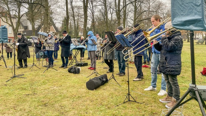 Die Blechbläser spielen ab 18 Uhr Advents- und Weihnachtslieder für die Bewohner der „Freien Scholle“ in Alt-Wittenau 41.