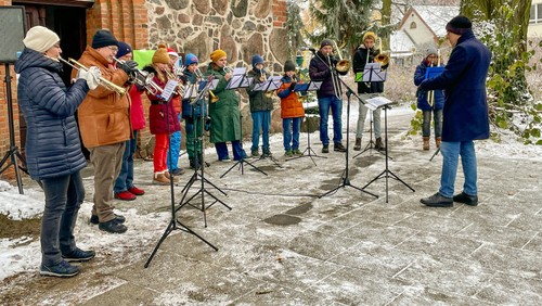 Musikalische Eröffnung des Adventsmarktes vor der Dorfkirche Alt-Wittenau mit Bläsermusik