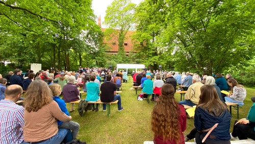 Gottesdienst im Garten neben der Kirche